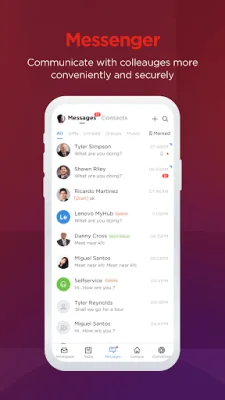 The Messages & Contact page allows for instant messaging with Lenovo colleagues, as well as group chats and a search system to easily find and connect with colleagues. This promotes better communication and collaboration within the company.