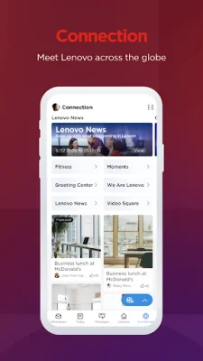 The Connection page allows employees to connect with colleagues from around the world and participate in various internal activities, such as Fitness and Moments, to share daily activities with their team. It also offers features like Greeting Center, We Are Lenovo, and Video Square to encourage originality and SEO-oriented content. Overall, Lenovo MyHub is a comprehensive and user-friendly application that aims to improve the employee experience at Lenovo.
