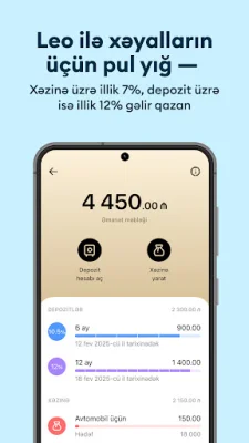 Tətbiq vasitəsilə gəlirli və etibarlı əmanətlər əldə edə bilərsiniz və taksitlə və komissiyasız ödəniş imkanından istifadə edə bilərsiniz. Bankdan və tərəfdaşlardan 20%-dək keşbek əldə edə bilərsiniz və xəzinə ilə pul yığmaq mümkündür. Leo ilə investisiya edə bilərsiniz və ödənişlər və köçürmələr də çox rahat şəkildə həyata keçirilə bilər. Kart balansınızı pulsuz artırmaq da mümkündür və 24/7 qayğıkeş dəstək xidməti də mövcuddur.