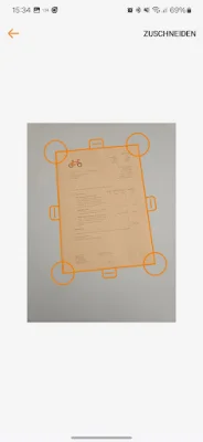 Eine der praktischsten Funktionen der App ist die automatische Belegerkennung. Während Sie den Beleg fotografieren, erkennt die App automatisch die Umrisse und schneidet und entzerrt den Beleg entsprechend. Dadurch sparen Sie sich lästiges manuelles Zuschneiden und haben immer einen perfekt ausgerichteten Beleg.