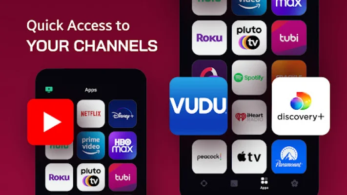 The app also offers a "Cast" tab, which allows you to share photos and videos from your gallery directly onto your TV with just a tap. You can search effortlessly using the keyboard, touchpad, or voice-to-text commands. Additionally, the "Apps" tab gives you quick access to popular media apps like Prime Video, Netflix, Hulu, and more.