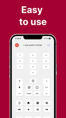 Say goodbye to your worries! With the « LG TV Remote » app, managing your LG TV has never been easier. This app allows you to access all the menus of your LG Smart TV, change channels, adjust volume, schedule recordings, and even pause and resume your TV program. It's like having a remote control right on your smartphone!