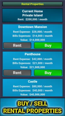 But this game is not just about making money - it also teaches you real-life money management skills. You can learn about passive income and the cashflow quadrant, as well as concepts from popular financial books like "Rich Dad Poor Dad" and "Think and Grow Rich." The developer of this game is a fan of Robert Kiyosaki and has incorporated his teachings into the game.