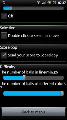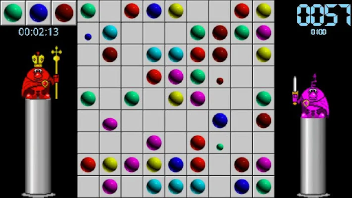 The objective of this application is to score as many points as possible by creating lines of balls of the same color. To play, you will use your touch screen to move the balls around the game board. First, you will select the ball you want to move and then choose an empty square as the destination. If the destination square is already occupied by another ball, that ball will become the one selected to be moved next. It is important to note that you may not always be able to place the ball where you want it to go.