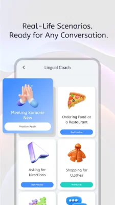 With our app, you will have access to various conversation scenarios that you may encounter in your daily life. These scenarios will assist you in learning how to respond appropriately, allowing you to practice your language skills in a practical and realistic way.