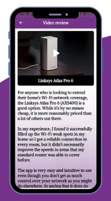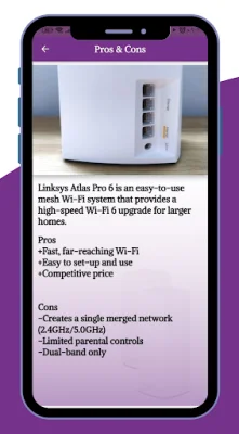 This app is a guide for setting up the Linksys Atlas Pro 6 router. It provides step-by-step instructions on how to properly configure the router and its important settings during installation. The app also offers solutions for common issues such as wifi disconnection and upgrading firmware.