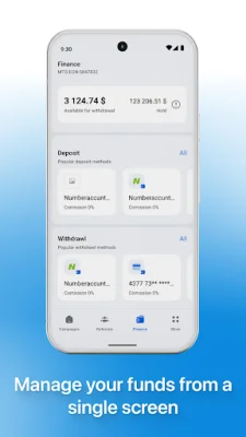 For those who are also active in financial markets, the application offers easy access to their trading account. With just one click, users can switch between managing their affiliate profile and opening trades, making it a convenient all-in-one platform.
