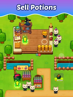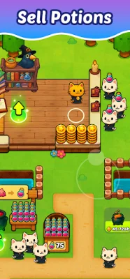 In addition to brewing potions, players can also hire magical cats to sell their potions for them. This allows players to focus on expanding their empire and discovering new areas. As players progress through the game, they can unlock upgrades and reinvest their gold to watch their potion empire grow.