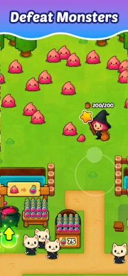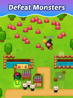 Brew potions, fight monsters, and build your magical empire! Step into the shoes of a mischievous little witch on a big mission: to create powerful potions and sell them to magical cats. This game allows players to explore mysterious lands, battle creatures, and collect their essence to craft new potions. As you progress, you can upgrade your cauldrons to brew faster and earn more.