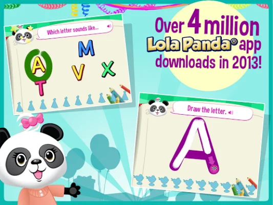 Through simple exercises and games, children will learn to listen to and blend sounds, match letters and words with pictures, and read short words. These activities help to build syllable and reading fluency, preparing children for more advanced reading in the future. Lola's ABC Party is the perfect bridge between Lola's Alphabet Train and the more advanced reading app, Lola's Learningland.