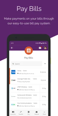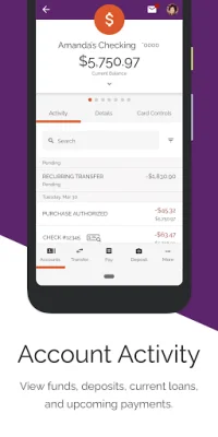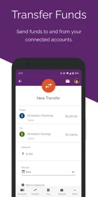 Managing bills is made simple with the app's bill pay system. You can schedule or manually make payments, ensuring that your bills are paid on time. The app also offers a funds transfer capability, allowing you to send money to and from your connected accounts at other financial institutions.
