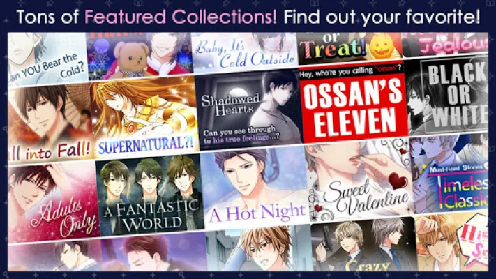 Looking for a new romantic adventure? Look no further! With our app, you have the chance to choose from 300 handsome men who are all vying for your heart. The decision is yours - who will sweep you off your feet? Will you stick to just one man or have a new guy for every day of the week? The possibilities are endless as you search for the perfect ikemen (handsome man) for you.