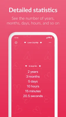 Love Counter is a unique and user-friendly app designed to help couples celebrate and cherish their love story. It offers a real-time love tracker that calculates the exact duration of your relationship in years, months, days, hours, minutes, and seconds. With just a tap, you can also view a detailed breakdown of your shared time, including the total number of hours spent together.