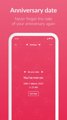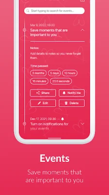 But Love Counter is more than just a time tracker. It also serves as a log for special moments in your relationship, such as your first date, first trip, or first kiss. These memories are organized and kept safe within the app, allowing you to relive them whenever you want. Additionally, Love Counter keeps track of all your anniversaries and sends reminders so you never miss a chance to celebrate.