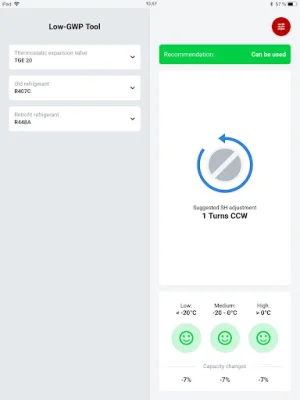 Low-GWP Tool is designed to make the process of choosing the right refrigerant for your system as simple as possible. It uses a straightforward calculation to show the indicative capacity difference of a retrofit refrigerant, taking into account factors such as the type of TXV, current refrigerant, operating range, and the desired retrofit refrigerant. This ensures that your chosen refrigerant is not only environmentally friendly, but also compatible and efficient.