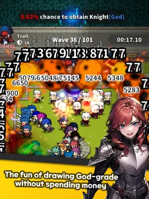 This application is a game where players can summon powerful heroes to help them defeat monsters. The heroes are divided into different tiers, with the highest tier being the God-Tier. Players can use SP earned from defeating monsters to summon these heroes, giving them a chance to pull a God-Tier hero. This adds an element of luck and excitement to the game.
