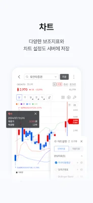 이 앱은 라이트/다크 테마를 제공하여 눈의 피로를 최소화하는 편안한 투자 환경을 제공합니다. 또한 다양한 보조지표와 차트설정을 서버에 저장하여 사용자가 편리하게 이용할 수 있도록 합니다. 주가와 재무지표를 비교할 수 있는 재무차트 기능도 제공됩니다.