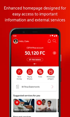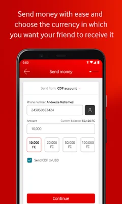 The app offers a range of features to make life easier for users, including secure login with an M-Pesa PIN, the ability to manage their M-Pesa wallet anytime and anywhere with a data connection or SMS capability, and the convenience of checking their account balance with a single tap. Users can also transact in both USD and CDF currencies, send money to contacts from their phone book, favorites, or recent recipients, and view and download recent transactions with the mini statement feature.