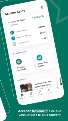 Ma Banque vous tient informé des opérations importantes sur vos comptes grâce à des notifications. Vous pouvez également bénéficier de conseils adaptés à votre situation financière. L'application dispose également d'un mode économiseur d'énergie, avec un mode sombre pour économiser la batterie de votre téléphone.