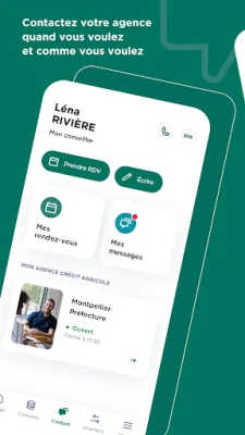 En plus de ces fonctionnalités, vous pouvez prendre un rendez-vous avec votre conseiller directement depuis l'application et communiquer avec lui par écrit. Vous avez également accès aux informations de votre agence et aux numéros d'urgence en cas de besoin. Vous pouvez même signer vos contrats en ligne et consulter vos e-documents en toute simplicité.