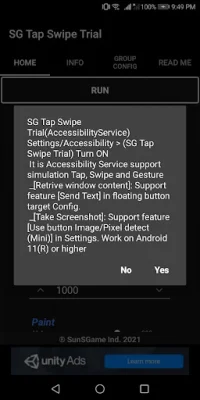 SG Tap Swipe is an application designed to assist users, particularly those with mobility impairments, in performing repetitive touch actions on their phone more easily. It offers customizable settings for tap and swipe speed and style, as well as the ability to simulate multiple touch points and set up sequences of actions. One of the key features of SG Tap Swipe is its optional image-recognition support module, which allows for more precise and intelligent automation. This module can be downloaded and activated within the app for even more convenience. It's important to note that SG Tap Swipe is intended as an Accessibility Service and is not meant for gaming or unauthorized automation. The app also offers a trial version for users to test device compatibility before purchasing the full version. One of the standout features of SG Tap Swipe is its support for tap and swipe automation, as well as multiple gestures. Users can also record finger gestures and create macros for easier automation. The app also offers a user-friendly interface and a variety of helpful settings. In terms of requirements, SG Tap Swipe is compatible with Android 7.0 and up and does not require root access. However, it does require certain permissions, such as accessibility service and system alert window, in order to function properly. The app also has a notice regarding permissions, stating that it does not collect or share personal or sensitive data. Overall, SG Tap Swipe is a useful tool for those who struggle with performing touch gestures manually on their phone. Its customizable settings and optional image-recognition support make it a convenient and accessible option for users with mobility impairments.