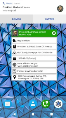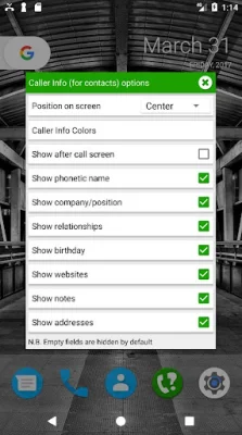 This application is a convenient and customizable pop-up window that will appear on your phone when you receive a call. It will gather information from your contacts and display it for you to see. This includes the caller's full name, nickname, phonetic name, company and position, relationships, birthday (with a reminder if it's today!), websites, notes, and address. This feature is especially useful for business people or anyone who frequently interacts with a large number of people and needs more information about them while they are on the phone.