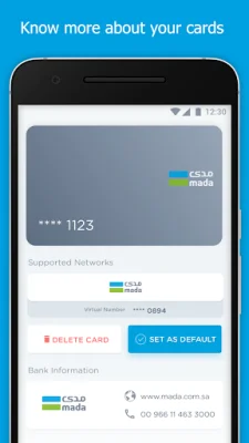 Mada is the leading payment choice in the Kingdom, offering a convenient and secure way to pay with your mobile device. With mada Pay, you can easily make purchases at stores without having to pull out your wallet and search for the right card. All your cards from any bank in the Kingdom can be stored in one place, making it easier to pay wherever you see the mada atheer logo or contactless payment symbol.