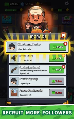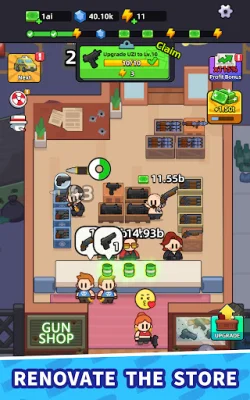 The game is an idle tycoon game that starts with your release from prison. You are broke and have no allies, so you must start your comeback by managing a small, humble weapon shop. Your goal is to manage sales, stock essential gear for the criminal world, and upgrade your shop to expand inventory and boost profits. Every dollar you earn brings you closer to regaining power and becoming the top mafia boss in the city.