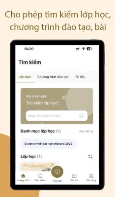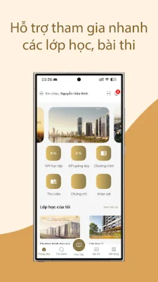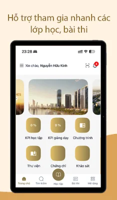 Người dùng cũng có thể tra cứu tài liệu học tập mọi lúc để tìm kiếm thông tin cần thiết cho việc học tập. Ứng dụng cũng cung cấp tính năng theo dõi tiến độ học và tỷ lệ hoàn thành lớp học, giúp người học có thể tự đánh giá và quản lý thời gian học tập một cách hiệu quả.
