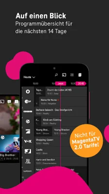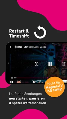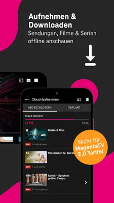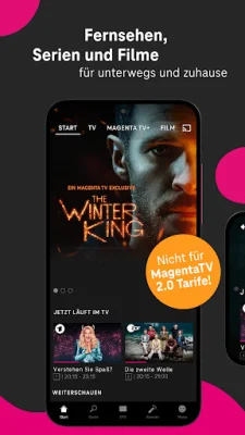 Die Nutzung dieser Anwendung erfordert einen Internetzugang von jedem Anbieter und einen MagentaTV Tarif von der Telekom. Weitere Informationen und die Möglichkeit zur Buchung findest du auf den Webseiten der Telekom Deutschland unter "TV". Es gibt jedoch Einschränkungen bei bestimmten Sendern aufgrund von Lizenzrechten, die nur in den Netzen der Telekom Deutschland empfangen werden können, wenn du dich im Inland befindest. Außerdem stehen nicht alle Sendungen für den Cloud Recorder, Download & Play sowie Timeshift & Restart zur Verfügung.