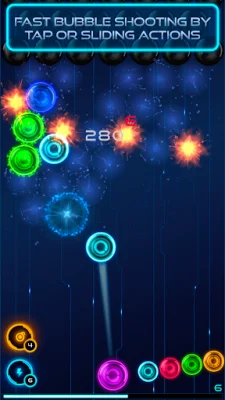 This application is a fast-paced shooting game that offers intuitive tap and slide controls for a seamless gameplay experience. It features realistic magnetic physics and dynamic gameplay, with hundreds of unique levels that include materials such as glass, iron, and magnets. Players can use precision laser aiming to make the perfect shot and take advantage of full gyroscope and accelerometer support for immersive controls. This game offers a modern twist on classic old-school arcade mechanics, making it a unique and exciting experience for players. To play, the objective is to clear the board by matching three or more neon marbles of the same color. Players can build massive combos, trigger explosive chain reactions, and reach the target score before the balls hit the bottom of the screen. It is the perfect game to play during your commute, a quick break, or while relaxing at home. This game offers more than just a bubble shooter experience. It challenges players to test their strategy and reaction time in a sci-fi neon world filled with geometry, physics, and vibrant neon effects. Players can use bombs, lightning, and laser precision to conquer every puzzle and advance to higher levels. If you are a fan of sci-fi aesthetics or classic arcade puzzles, this game is perfect for you. It can be played offline anytime, without the need for Wi-Fi. So, whether you are looking for a fun way to pass the time or want to challenge your skills, this game has something for everyone. Be sure to give it a try and see how far you can go!