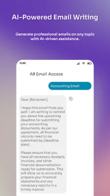 One of the key features of All Email Connect is its unified inbox, which allows you to access and manage all your emails from various accounts in a single, consolidated inbox. This eliminates the need to constantly switch between different email apps, saving you time and effort. Additionally, the app utilizes advanced AI technology to provide smart suggestions and customizable templates for composing emails, enhancing your productivity and efficiency.