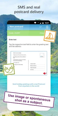 For SMS, users can easily send and receive messages. The app also allows for worldwide sending of postcards, making it convenient to send personalized holiday greetings directly from the app.