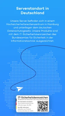 Die Sicherheit Ihrer Daten ist uns besonders wichtig. Daher werden alle Daten verschlüsselt, unabhängig davon, ob Sie sich in einem öffentlichen WLAN oder privaten Netzwerk befinden. Die App verwendet die neueste Verschlüsselungstechnologie und unterliegt dem strengen deutschen Datenschutzgesetz. Zusätzlich unterstützt die App die PGP-Verschlüsselung, um Ausspähversuche zu verhindern. Die Server befinden sich in einem Hochsicherheitsrechenzentrum in Deutschland und die App bietet auch einen PIN-Schutz, um sie vor unbefugtem Zugriff zu schützen.