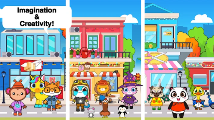 As you complete tasks, you'll receive new gifts that will unlock fun toys for you to play with. And the best part? You get to pretend play in your very own town, complete with venues for Bunny, Fox, Panda, Pug, Duck, Unicorn, Raccoon, Monkey, Lion, and Kitty. And to make things even more adorable, all of these pets are dressed up in cute outfits for every occasion.