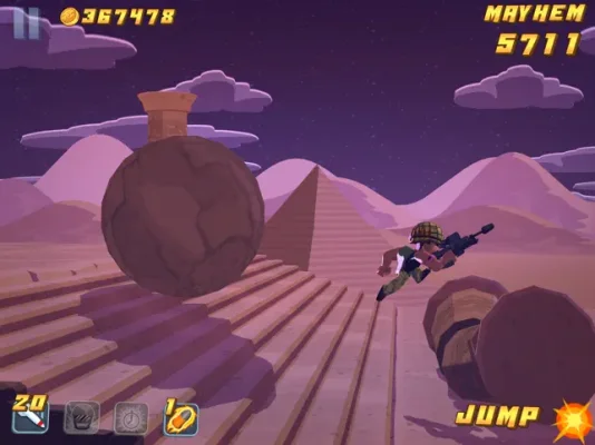 The game boasts impressive features, including 45 levels of non-stop action, 4 game modes, Game Center Leaderboards, 100 achievements, and 150 mini mission objectives. Players can also use 5 power-ups to help them battle through hordes of enemies in three different environments: Tropics, Metropolis, and Desert. With 20 unique weapons to choose from, including an Automatic Shotgun and a Quadzooka, players can unleash major mayhem on their enemies. Additionally, there are 42 costumes and hats to customize Major Mayhem's appearance.