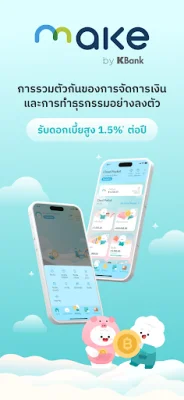 MAKE by KBank is a popular money management application and e-Savings account that offers a high interest rate of up to 1.5% per year for the first 500,000 Baht and 0.65% for any amount exceeding 500,000 Baht. This application provides various features to help users manage their finances more effectively. One of its key features is the Cloud Pocket, which allows users to create unlimited sub-accounts and personalize them with custom names, images, goals, and locks. This makes it easier to separate expenses and savings for different purposes, such as food, bills, and savings.