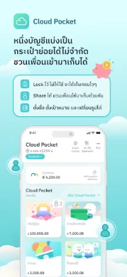 Another unique feature of MAKE by KBank is the ability to share Cloud Pockets with friends. This allows users to invite their friends to join their Cloud Pocket and save money together. Both the owner and members can request money and view transaction history transparently, making it a convenient and transparent way to save money with friends.