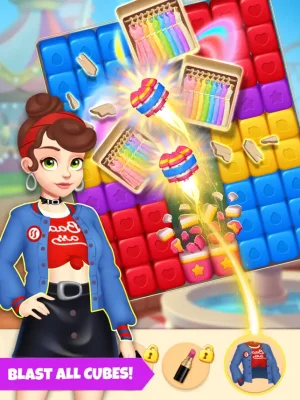 Makeover Blast combines cube blast puzzle gameplay with dressing up and a captivating storyline. Join Frana on her journey to blast and crush blocks, collect fantastic items, and unlock a sweet love adventure. Download this love story puzzle game and play it anytime, anywhere. Share it with friends for a fun and cheerful time together. With Makeover Blast, you'll never be bored!