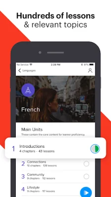 The app provides comprehensive courses that cover vocabulary, pronunciation, grammar, and culture all in one interactive lesson. You can also practice expressing your thoughts in different languages and immediately apply your new knowledge. Mango offers popular European languages such as German, Spanish, French, and Portuguese, as well as Asian languages like Korean, Chinese, and Japanese.