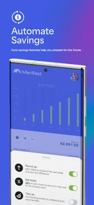Manifest also offers automated savings tools, such as 'Round Up' and 'Set Aside', to help creators take control of their finances and prepare for the future. These tools make managing money smarter and more efficient.