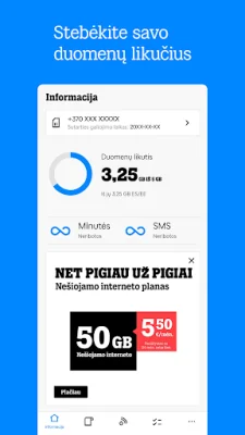 Ši programėlė yra skirta TELE2 klientams, kurie nori lengvai ir patogiai stebėti savo telefono planą ir sąskaitą. Ji suteikia galimybę sužinoti likusias SMS ir pokalbių minutes, stebėti sunaudojamų minučių, SMS ir duomenų statistiką, bei sužinoti interneto duomenų likutį ir vidurkį. Taip pat galima sekti duomenų kiekio likutį ES/EEE šalyse ir užsisakyti papildomą vienkartinį duomenų paketą.