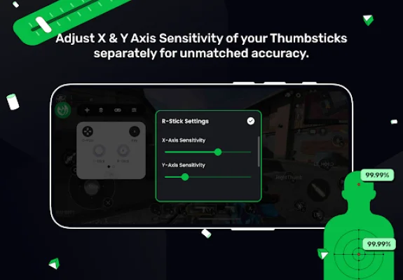 The app also offers separate X/Y axis camera sensitivity, allowing players to customize the vertical and horizontal sensitivity of their thumbsticks for better control in shooter games. Mantis also has incredible DPAD support, allowing players to use their DPAD like a thumbstick, making it great for gamepads without physical thumbsticks.