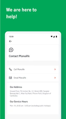 Lastly, users can easily connect with Manulife through the application, whether it's for support or to contact agents directly. This feature provides a convenient and efficient way for users to get in touch with the company for any assistance they may need.