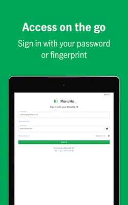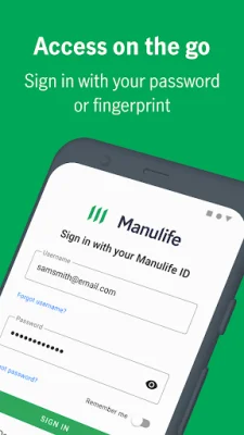 Rest assured that your personal data is always kept confidential and encrypted for your security. To use the app, you will need valid sign-in information, which you can register for directly on the app or at https://www.manulife.ca/. If you forget your password, you can quickly reset it and continue using the app. For more information, visit https://www.manulife.ca/mobile.