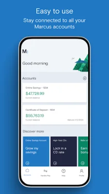 The application allows users to grow and manage their savings through various accounts such as Online Savings Accounts, High-Yield CDs, No-Penalty CDs, and Rate Bump CDs. These accounts offer competitive rates and can be easily opened and funded with just a few taps. Users can also conveniently manage their accounts, check balances, and schedule transfers on the go. The app also provides real-time information on current rates and offers calculators to help users predict their savings growth. Additionally, there is no minimum deposit required to open an Online Savings Account and all accounts are FDIC-insured for added security.