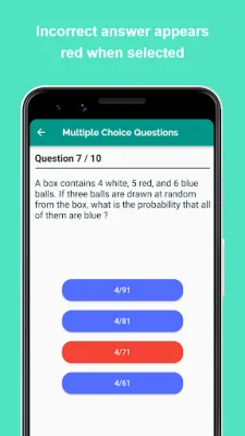 This application is designed to help individuals who are looking to enhance their quantitative aptitude skills or are new to the subject. It offers a resources page where users can begin their journey towards improving their skills. The main focus of the app is a quiz section, which contains 10 questions in each quiz. Each question is timed for 2 minutes to help users practice time management. If the user does not select an answer within the given time, the quiz automatically moves on to the next question. The correct answer is highlighted in green, while the incorrect answer is shown in red. Once the quiz is completed, the results page displays the user's performance.
