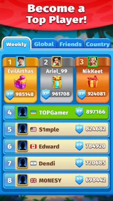 Invite your friends to join in on the fun and engage in pvp matches together. Or, you can be paired with players of similar skill levels for an exciting multiplayer match 3 game. Join a team to connect with other match masters from around the world, share your achievements, and receive extra boosters and coins. Who knows, you may even build some lasting friendships in this puzzle game.