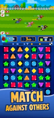 Players can engage in real-time PvP battles, strategizing their moves on a 7x7 puzzle board to match tiles and power up their horse. Each match made increases the horse's speed, bringing players closer to the finish line. The goal is to outmatch opponents and claim victory in these engaging matches.