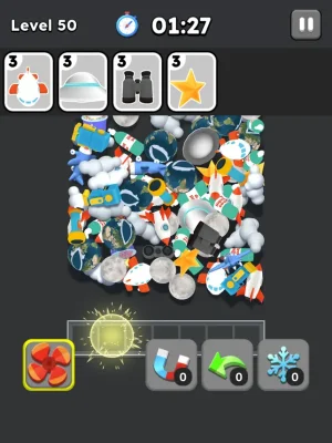 To play, simply tap on three identical tiles to create mesmerizing triples. Keep sorting and matching objects until the entire board is cleared. Each level has specific objectives that you must complete to truly become a 3D puzzle master. But be quick, as each level is time-sensitive and requires quick thinking to succeed. Don't worry, you have boosters at your disposal to help you tackle challenging levels. You can also use the Shuffle feature to rearrange items on the board for better outcomes.